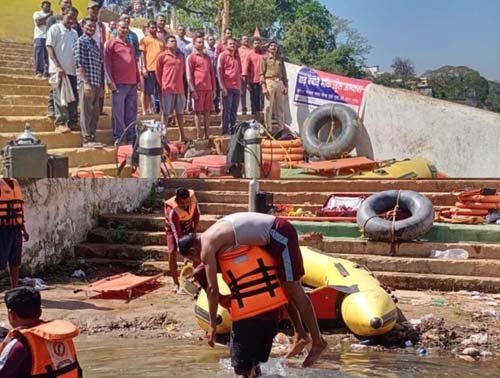 आपदा से बचाव के लिए महादेव घाट में किया गया मॉक ड्रिल