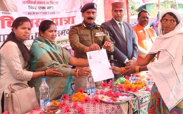 कमिष्नर राजीव शर्मा आज अनूपपुर जिले के ग्राम पंचायत धरमदास में विकास यात्रा के दौरान ग्रामीणों को संबोधित कर रहे थे। नल-जल योजना बनने से गांव के लोगों के जीवन में खुषहाली आएगी। गांव के लोगों को सहजता से घर-घर पानी उपलब्ध होगा। कमिष्नर ने कहा कि इस पवित्र कार्य में सबको सहयोग करने की आवष्यकता है। इस अवसर पर कमिष्नर ने जल संरक्षण एवं संवर्धन के लिए लोगों को जल संवर्धन की शपथ दिलाई। कमिष्नर ने इस अवसर पर विभिन्न कल्याणकारी योजनाओं के हितग्राहियों को हितलाभों का वितरण भी किया। कार्यक्रम को संबोधित करते हुए एडीजी दिनेष चंद्र सागर ने कहा कि ग्रामीण अपने बच्चों के पढ़ाई पर ध्यान दें। उन्होंने कहा कि षिक्षा विकास का मार्ग प्रषस्त करती है। षिक्षा उन्नति और प्रगति की राह दिखाती है।
