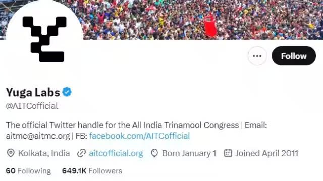 ममता बनर्जी की पार्टी तृणमूल कांग्रेस का ऑफिशियल ट्विटर अकाउंट मंगलवार को हैक कर लिया गया। ट्विटर हैंडल को हैक किए जाने के बाद नाम और डिस्प्ले पिक्चर बदल दिया गया था, जिसकी जगह "युगा लैब्स" का नाम लिखा नजर आया। पार्टी की तरफ से दिए गए बयान में कहा गया है कि वे इस मुद्दे को सुलझाने की कोशिश कर रहे हैं। युगा लैब्स यूएस में स्थित एक ब्लॉकचेन टेक्नोलॉजी कंपनी है जो एनएफटी और डिजिटल कलेक्टिबल्स बनाती है। यह क्रिप्टोक्यूरेंसी और डिजिटल मीडिया में भी माहिर है।