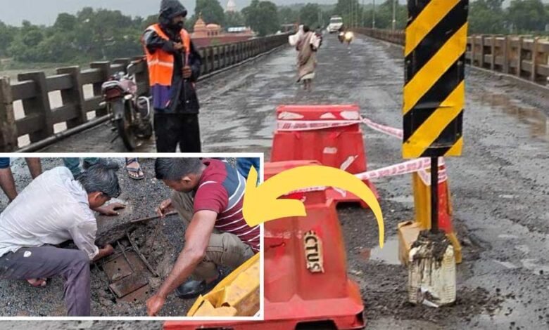 देवास व हरदा जिले को जोड़ने वाले नेमावर स्थित पुल के मध्य वाले भाग का स्लैब धसा, रोड बंद कर किया डायवर्ट