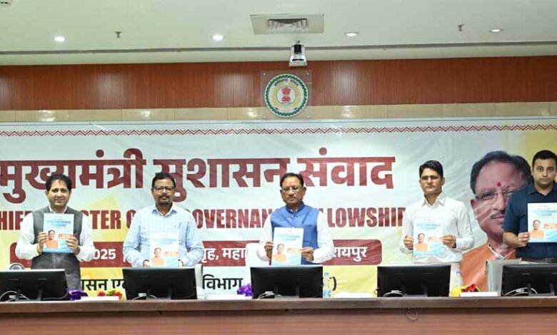 मुख्यमंत्री साय ने मुख्यमंत्री सुशासन फेलोशिप कोर्स के प्रोस्पेक्टस का विमोचन किया और विद्यार्थियों को छत्तीसगढ़ अंजोर विजन डॉक्युमेंट की प्रति भी भेंट की।
