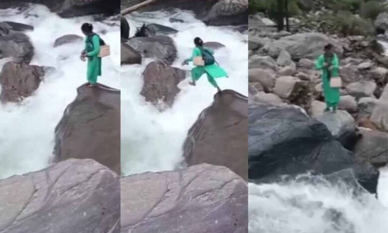 हिमाचल प्रदेश में बरसात कहर बरपा रही है। नदी-नाले उफान पर हैं। कई इलाकों में पुल और सड़कें बह चुकी हैं और आम जनजीवन अस्त-व्यस्त है। इसी बीच मंडी जिला की चौहारघाटी से एक वीडियो सोशल मीडिया पर तेजी से वायरल हो रहा है, जिसने सबको हैरान कर दिया। वीडियो में स्टाफ नर्स कमला उफनते नाले को पत्थरों पर छलांग लगाकर पार करती नजर आ रही हैं।