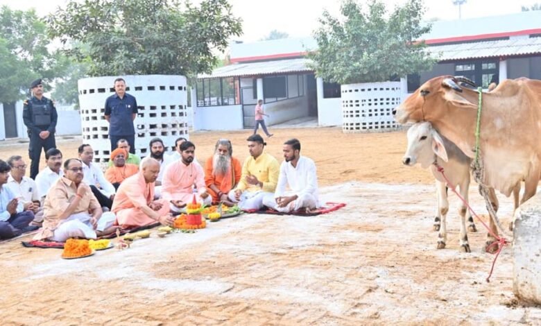 गोरखनाथ मंदिर की गोशाला में मुख्यमंत्री ने की गोवर्धन पूजा