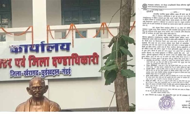 खैरागढ़–छुईखदान–गंडई जिले में प्रशासन ने सार्वजनिक व्यवस्था और सरकारी कामकाज को प्रभावित होने से रोकने के लिए बड़ा फैसला लिया है. कलेक्टर और जिला दंडाधिकारी इन्द्रजीत चंद्रवाल ने भारतीय नागरिक सुरक्षा संहिता, 2023 की धारा 163 के तहत आदेश जारी करते हुए कलेक्ट्रेट परिसर के 100 मीटर के दायरे को पूरी तरह “शांति क्षेत्र” घोषित कर दिया है. अब इस क्षेत्र में धरना, प्रदर्शन, जुलूस, नारेबाजी और लाउडस्पीकर का उपयोग नहीं किया जा सकेगा.