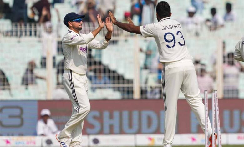 इंडिया वर्सेस साउथ अफ्रीका दो मैच की टेस्ट सीरीज का पहला मैच कोलकाता के ऐतिहासिक ईडन गार्डन्स मैदान पर खेला जा रहा है। भारत ने तीसरे सेशन की शुरुआत में दक्षिण अफ्रीका की पहली पारी 159 रनों पर समेट दी। मेहमान टीम 55 ओवर ही खेल सकी। जसप्रीत बुमराह ने घातक पंजा मारा। उन्होंने 14 ओवर में 27 रन देकर पांच विकेट हासिल किए। साउथ अफ्रीका ने टी ब्रेक तक 8 विकेट खोकर 154 रन बनाए थे। साउथ अफ्रीका के कप्तान टेंबा बावूमा ने टॉस जीतकर पहले बैटिंग करने का फैसला लिया।