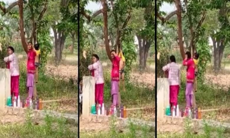 छत्तीसगढ़ के सूरजपुर जिले में एक चौंकाने वाली और शर्मनाक घटना सामने आई है, जिसने शिक्षा व्यवस्था पर गंभीर सवाल खड़े कर दिए हैं. यहां के एक स्कूल में एक मासूम बच्चे को अमानवीय तरीके से दंडित करने का वीडियो सोशल मीडिया पर तेजी से वायरल हो रहा है. वीडियो में बच्चा केवल टी-शर्ट के सहारे पेड़ से लटका हुआ नज़र आता है, जबकि नीचे उसने सिर्फ अंडरवीयर पहना हुआ है. वह पूरी तरह से असहाय है और उसका हल्का शरीर हवा में इधर-उधर झूलता दिखाई देता है, जिसे देख हर कोई स्तब्ध है.