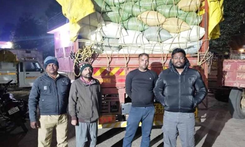 बलरामपुर में बड़ी कार्रवाई: यूपी से आ रहे अवैध धान से भरा ट्रक जब्त, 400 बोरी बरामद
