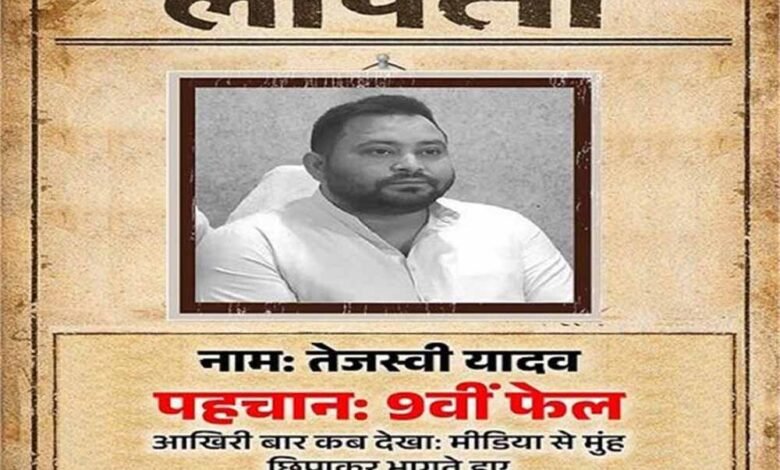 "लापता की तलाश! नाम- तेजस्वी यादव, पहचान- 9वीं फेल…",