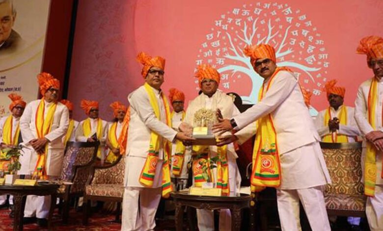 राज्यपाल मंगुभाई पटेल ने कहा कि अटल बिहारी वाजपेयी का राष्ट्र प्रेम ओजस्वी व्यक्तित्व और हिन्दी प्रेम, हिन्दी भाषा का गौरव प्रतीक है। उन्होंने कहा कि स्वर्गीय वाजपेयी जी को निकट से देखने का मौका उन्हें कई बार मिला है। उन्होंने सुदर्शन जी को भी सुना है। आपात स्थिति की घोषणा के दिन गुजरात में आयोजित सभा का उल्लेख करते हुए बताया कि स्वर्गीय जय प्रकाश नारायण जी कहते थे कि अटल जी के मुख में सरस्वती का वास है। उन्होंने कहा कि स्वर्गीय वाजपेयी की अंतिम यात्रा में प्रधानमंत्री नरेन्द्र मोदी जी का 5 किलोमीटर पैदल चलना अपने नेता के प्रति श्रद्धा अभिव्यक्ति का अभूतपूर्व और प्रेरणादायी उदाहरण है। उन्होंने कहा कि प्रधानमंत्री नरेन्द्र मोदी जी के नेतृत्व में नई राष्ट्रीय शिक्षा नीति ने विद्यार्थियों के जीवन मूल्यों और उपलब्धियों के लिए अनंत संभावनाओं के नए द्वार खोले हैं। उनके दूरदर्शी नेतृत्व में भारत आध्यात्मिक चेतना और भारतीय मूल्यों के समन्वय के साथ ‘विकसित भारत एट 2047’ के लक्ष्य की ओर तेजी से आगे बढ़ रहा है।