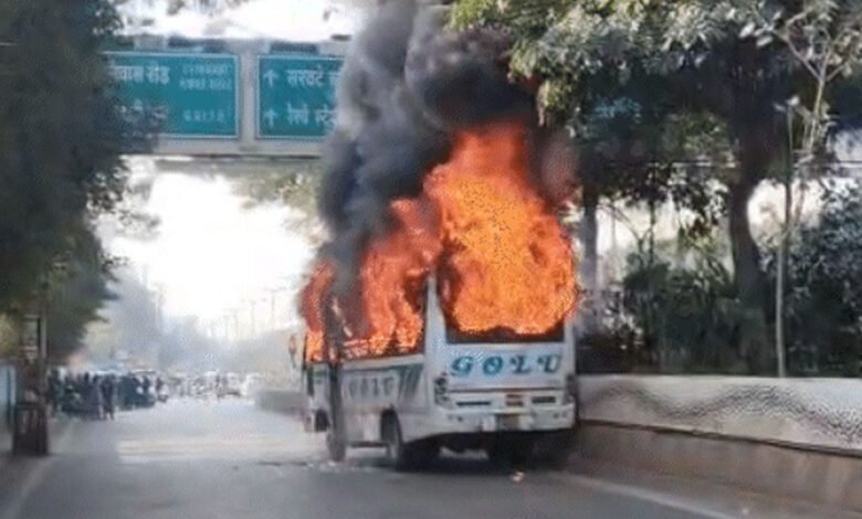 इंदौर में वाहन टकराने के बाद शुक्ला ब्रदर्स की बस में आग, यात्री सुरक्षित, फायर ब्रिगेड ने पाया काबू