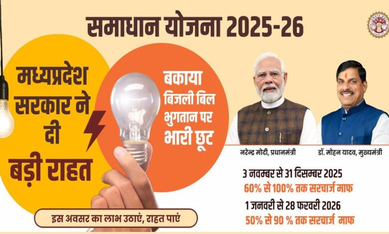 समाधान योजना 2025-26 का उद्देश्य 3 माह से अधिक अवधि के उपभोक्ताओं को बकाया विलंबित भुगतान के सरचार्ज पर छूट प्रदान करना है। यह योजना 'जल्दी आएं, एकमुश्त भुगतान कर ज्यादा लाभ पाएं' के सिद्धांत पर आधारित है। इस योजना में उपभोक्ता को प्रथम चरण में एकमुश्त भुगतान करने पर सबसे अधिक लाभ हो रहा है जबकि द्वितीय चरण के दौरान छूट का प्रतिशत क्रमशः कुछ कम हो जाएगा। दो चरणों में प्रारंभ हुई योजना को प्रथम चरण की शुरुआत 3 नवंबर 2025 से हुई जो 31 जनवरी 2026 तक चलेगी। इसमें बकाया बिल एकमुश्त जमा करने पर 60 से लेकर 100 प्रतिशत तक सरचार्ज माफ किया जा रहा। इसके बाद द्वितीय और अंतिम चरण शुरू होगा जो 01 फरवरी से 28 फरवरी 2026 तक चलेगा। दूसरे चरण में 50 से 90 फ़ीसदी तक सरचार्ज माफ किया जाएगा। समाधान योजना 2025-26 का लाभ उठाने उपभोक्ताओं के लिए कंपनी के ऐप एवं कॉमन सर्विस सेंटर (सीएससी) तथा एमपी ऑनलाइन पर भी पंजीयन की सुविधा उपलब्ध है। पंजीयन के दौरान अलग-अलग उपभोक्ता श्रेणी के लिए पंजीयन राशि निर्धारित की गई है। घरेलू एवं कृषि उपभोक्ता कुल बकाया राशि का 10 प्रतिशत तथा गैर घरेलू और औद्योगिक उपभोक्ता कुल बकाया राशि का 25 प्रतिशत भुगतान कर पंजीयन कराकर योजना में शामिल होकर लाभ उठा सकते हैं। विस्तृत विवरण तीनों कंपनियों की वेबसाइटों पर भी देखा जा सकता है। साथ ही विद्युत वितरण केंद्र में पहुंचकर भी योजना के संबंध में जानकारी प्राप्त की जा सकती है।