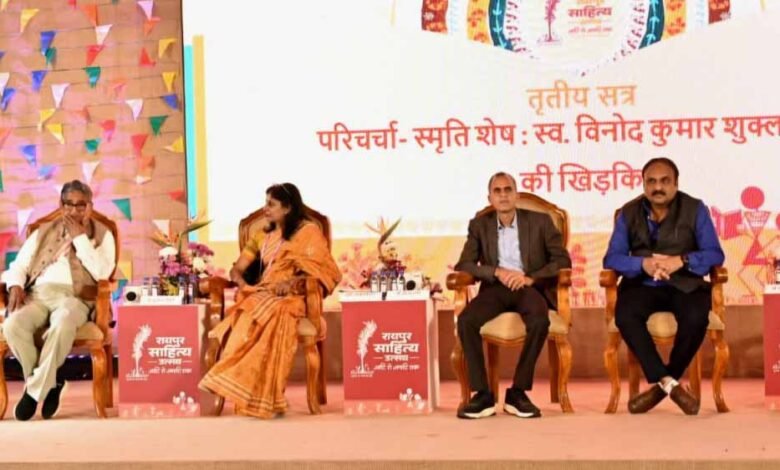 नवा रायपुर के पुरखौती मुक्तांगन में जनसंपर्क विभाग द्वारा आयोजित रायपुर साहित्य उत्सव के पहले दिन  देश के शीर्षस्थ साहित्यकार स्वर्गीय  विनोद कुमार शुक्ल और उनके साहित्य का स्मरण किया गया। ‘स्मृति शेष स्वर्गीय विनोद कुमार शुक्ल : साहित्य की खिड़कियां’ विषय पर आयोजित परिचर्चा में साहित्य, प्रशासन, पत्रकारिता और फिल्म से जुड़े वक्ताओं ने  उनके व्यक्तित्व और कृतित्व पर भावपूर्ण संवाद किया। वक्ताओं ने  शुक्ल और उनकी रचनाओं से जुड़े अपने अनुभव साझा करते हुए उनके साहित्य को मानवीय संवेदना और मौलिक अभिव्यक्ति का अद्वितीय उदाहरण बताया।