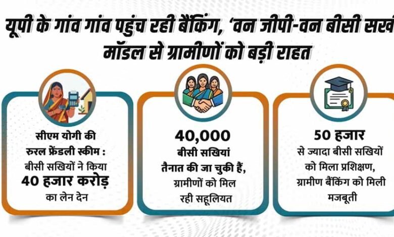 उत्तर प्रदेश में मुख्यमंत्री योगी आदित्यनाथ के मार्गदर्शन में ‘एक ग्राम पंचायत–एक बीसी सखी’ योजना ने सफलता की नई कहानी लिखी है। बिजनेस कॉरेस्पॉन्डेंट सखी (बीसी सखी) के रूप में काम कर रही ग्रामीण महिलाओं ने अब तक करीब 40,000 करोड़ का बैंकिंग लेन-देन किया है, जिसके जरिए 106 करोड़ से ज्यादा का लाभांश भी मिला है। राज्य में इस योजना के तहत अब तक 40 हजार बीसी सखियां तैनात की जा चुकी हैं, जिनके जरिए बैंक अब लोगों के घर तक पहुंचा है। ग्रामीणों को भी रोजमर्रा के बैंक संबंधित कामों में काफी सहूलियत मिल रही है। योजना से राज्य की हजारों महिलाएं आर्थिक रूप से मजबूत हुई हैं और परिवार की जिम्मेदारी भी उठा रही हैं।