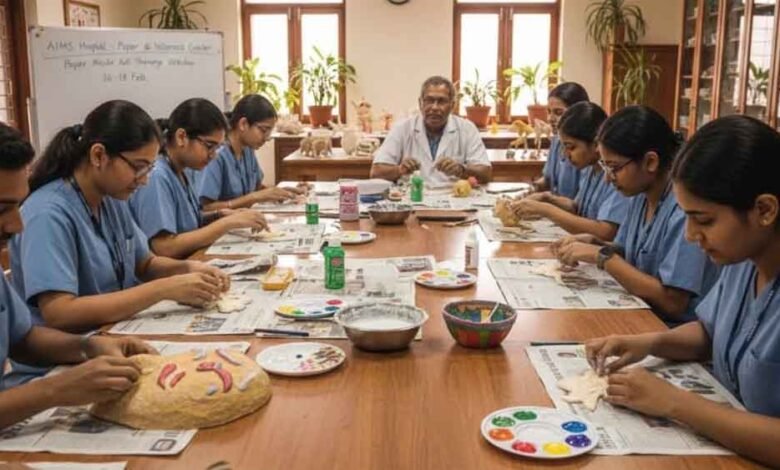 AIIMS Bhopal में नई पहल: आर्ट थैरेपी से तनाव होगा दूर, रद्दी अखबारों से बनेगी रचनात्मकता