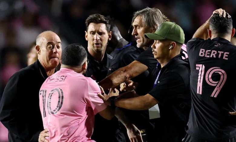 शर्टलेस फैन ने मचाई अफरा-तफरी, पिच पर गिर पड़े लियोनेल मेसी