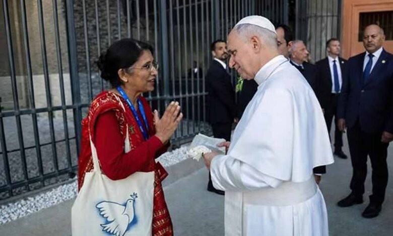 सृजन को सु अनुराधा शंकर से.नि. आईपीएस जो कि गांधी पीस फाउंडेशन से संबद्ध हैं के द्वारा वेटिकन सिटी के धर्मगुरू पोप तथा अन्य को रोम के एक कार्यक्रम में 26 अक्टूबर 2025 को भेंट किया गया। इस कल्पना को साकार करने में नर्मदापुरम की महिला उद्यमी रत्नम और राकेश ने अपना योगदान दिया है।