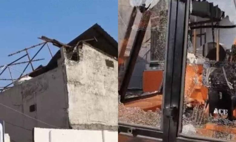 तेज आवाज के साथ गिरा मलबा, टीन शेड हुए क्षतिग्रस्त