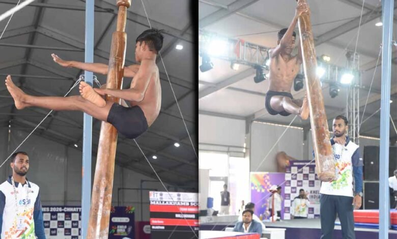गांधी स्टेडियम अंबिकापुर में मल्लखंभ का भव्य शुभारंभ, खेलो इंडिया ट्राइबल गेम्स 2026 में पारंपरिक खेलों का दमदार प्रदर्शन