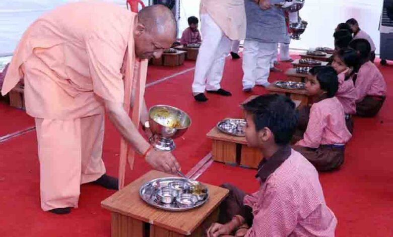 सीएम योगी ने शिवपुर से किया स्कूल चलो अभियान का आगाज, बच्चों को अपने हाथों से परोसा मिड-डे मील