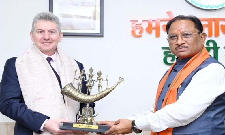 मुख्यमंत्री विष्णु देव साय से आस्ट्रेलिया के महावाणिज्य दूत बर्नार्ड लिंच ने की सौजन्य मुलाकात
