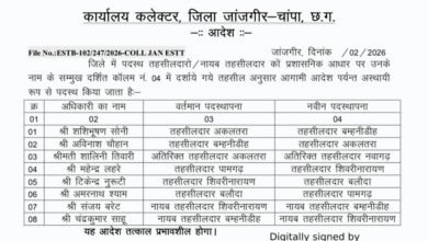- जांजगीर-चांपा जिले में पदस्थ तहसीलदार, नायब तहसीलदारों का नवीन पदस्थापना